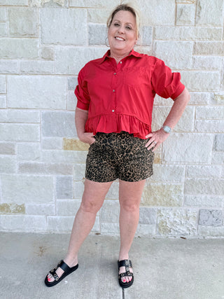Judy Blue Leopard Magic: High-Waisted Tummy Control Cutoff Shorts