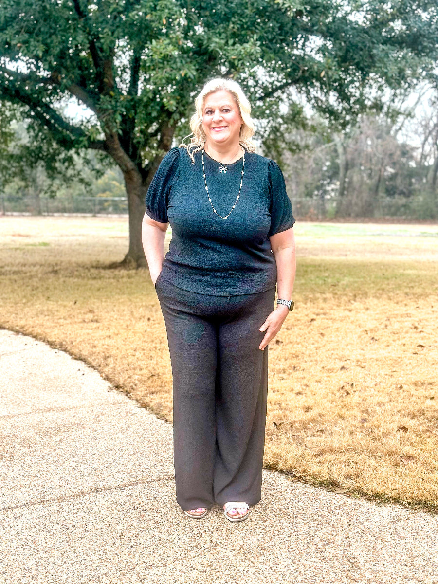 CRINKLE WIDE LEGGED BOTTOMS W/TIE