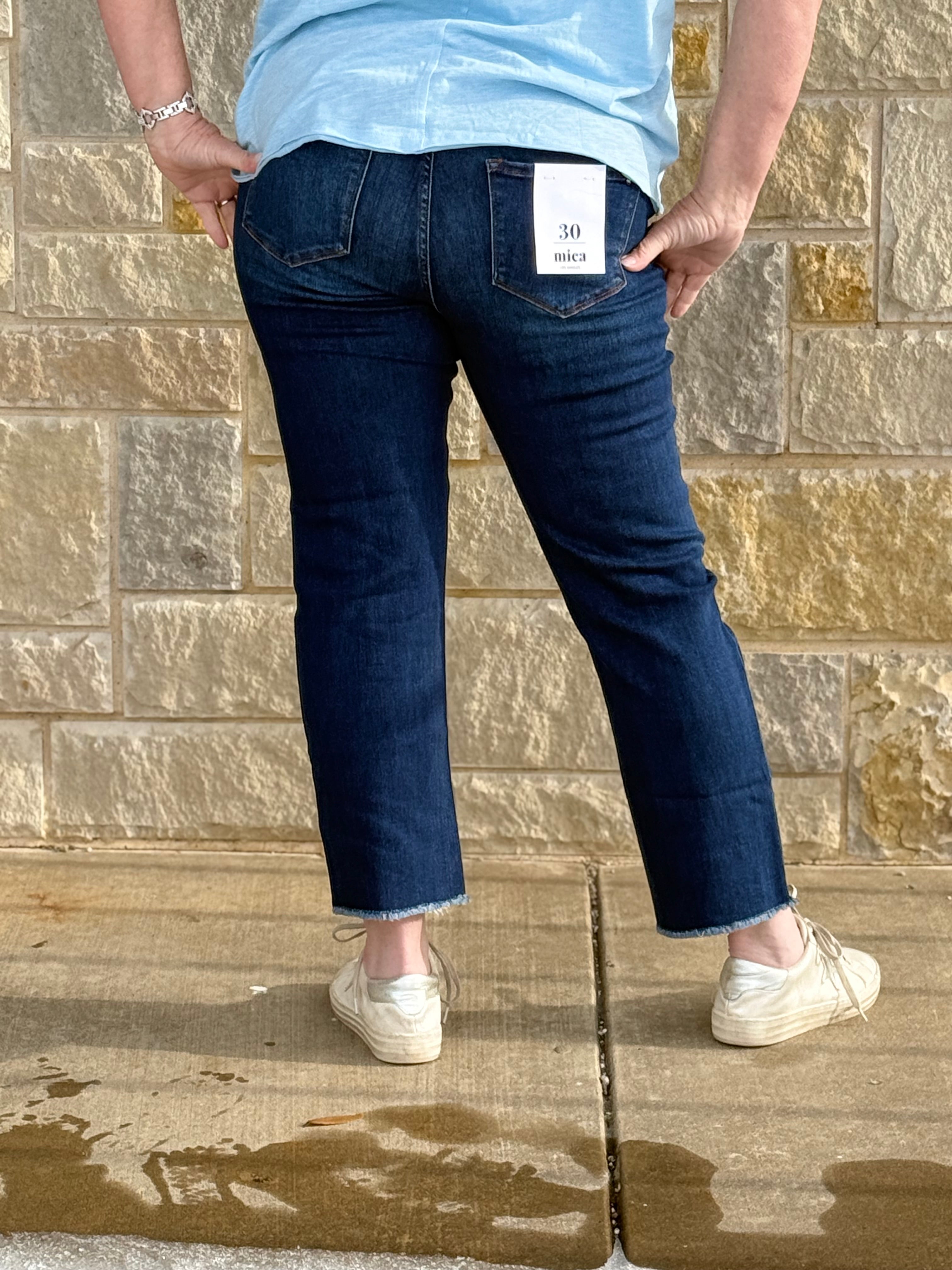 Introducing our Mica High Rise Straight Crop Jean, the epitome of luxury and sophistication. Crafted with the finest materials, these jeans feature a high rise waist and a straight crop leg for a flattering silhouette. Elevate your fashion game with this exclusive piece.