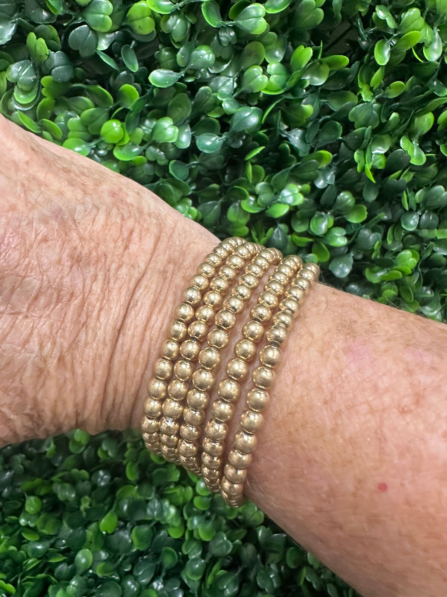 GOLD BEADED STRETCH 5 PIECE BRACELET SET