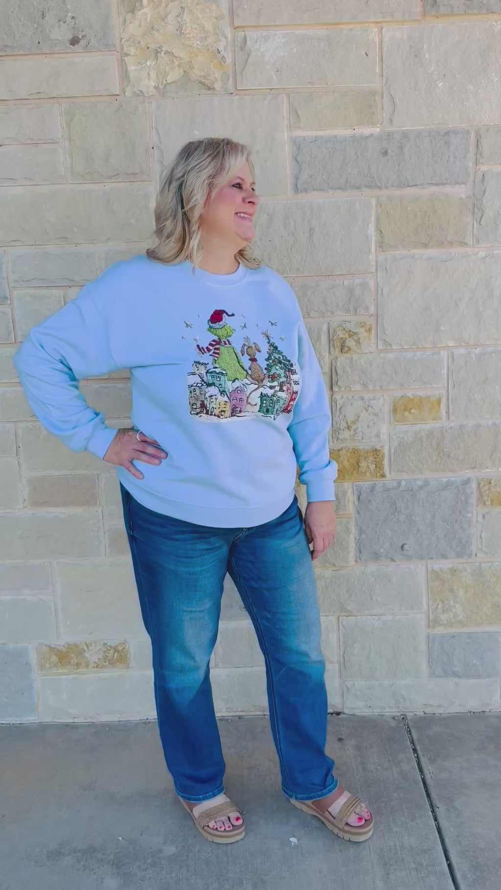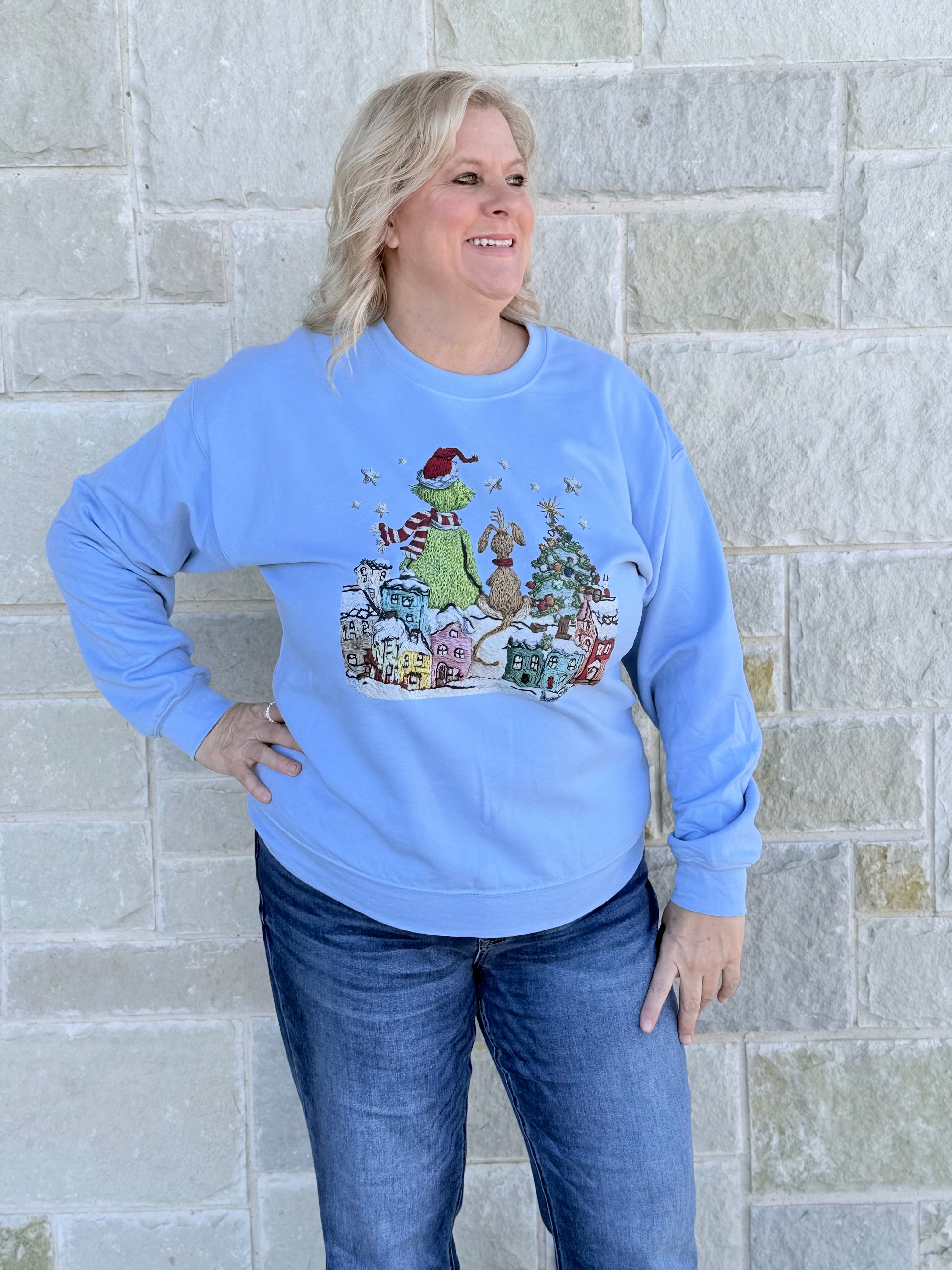 Cozy up this holiday season in our whimsical Grinch Christmas Sweatshirt! Featuring an adorable crocheted-look print of everyone's favorite reindeer, this playful piece brings festive charm and comfort together. Perfect for spreading Christmas cheer at holiday gatherings, casual outings, or cozy nights in. The textured Grinch design gives off handmade vibes while the soft sweatshirt keeps you warm and snug. Celebrate the season with style and a dash of nostalgic holiday magic!