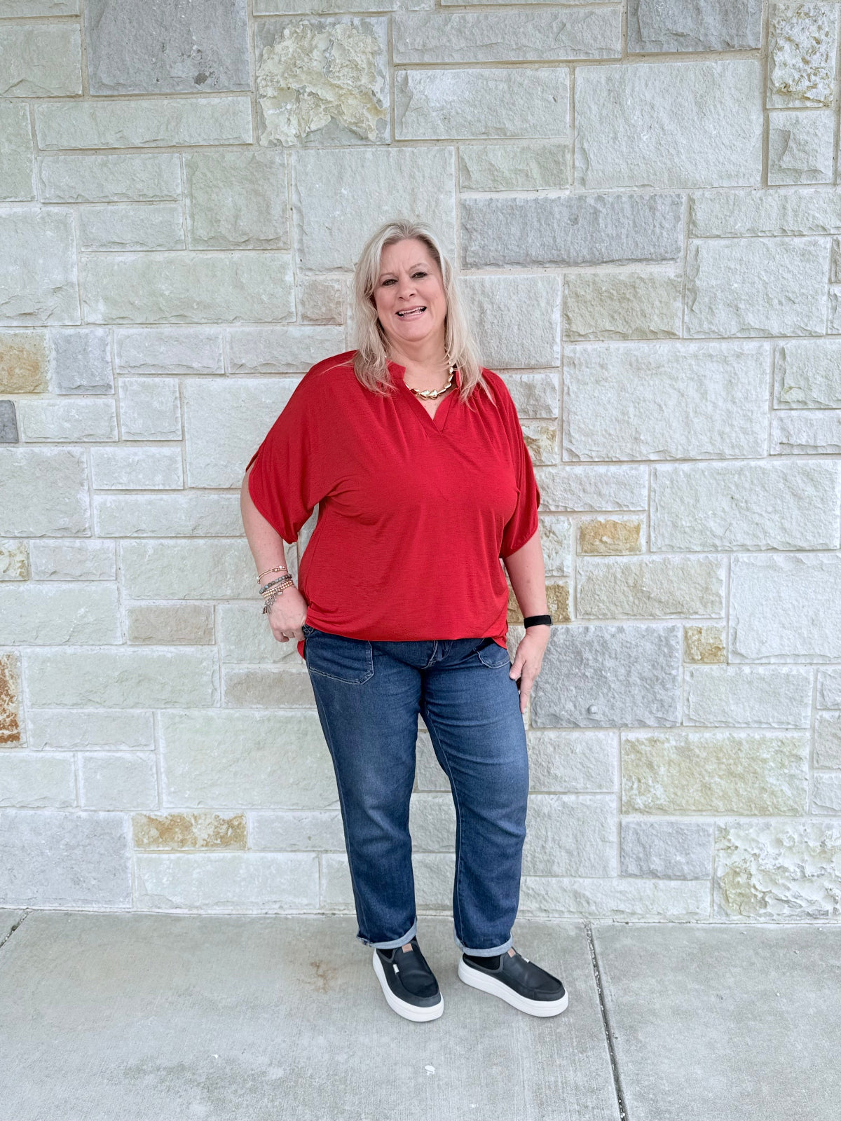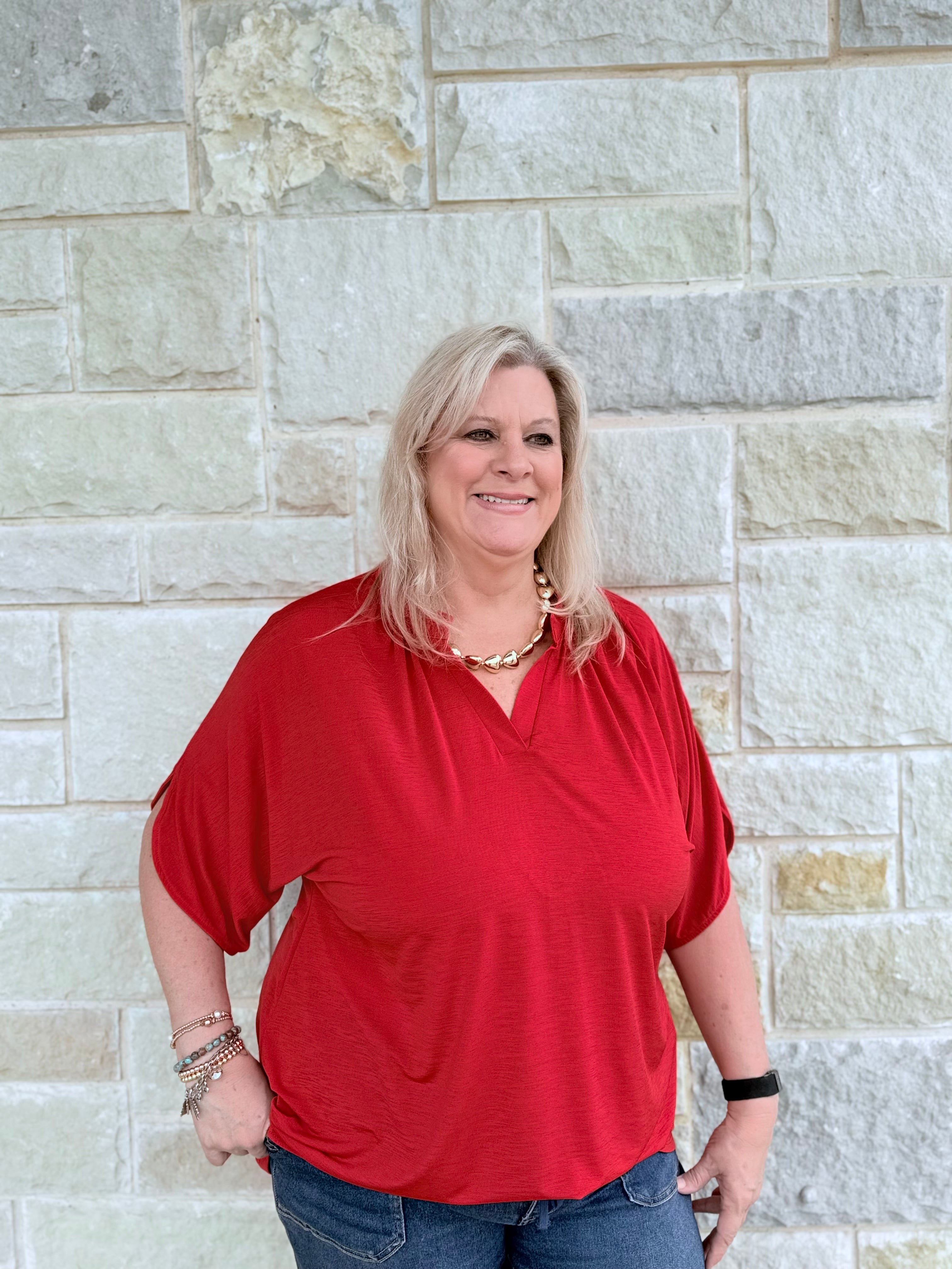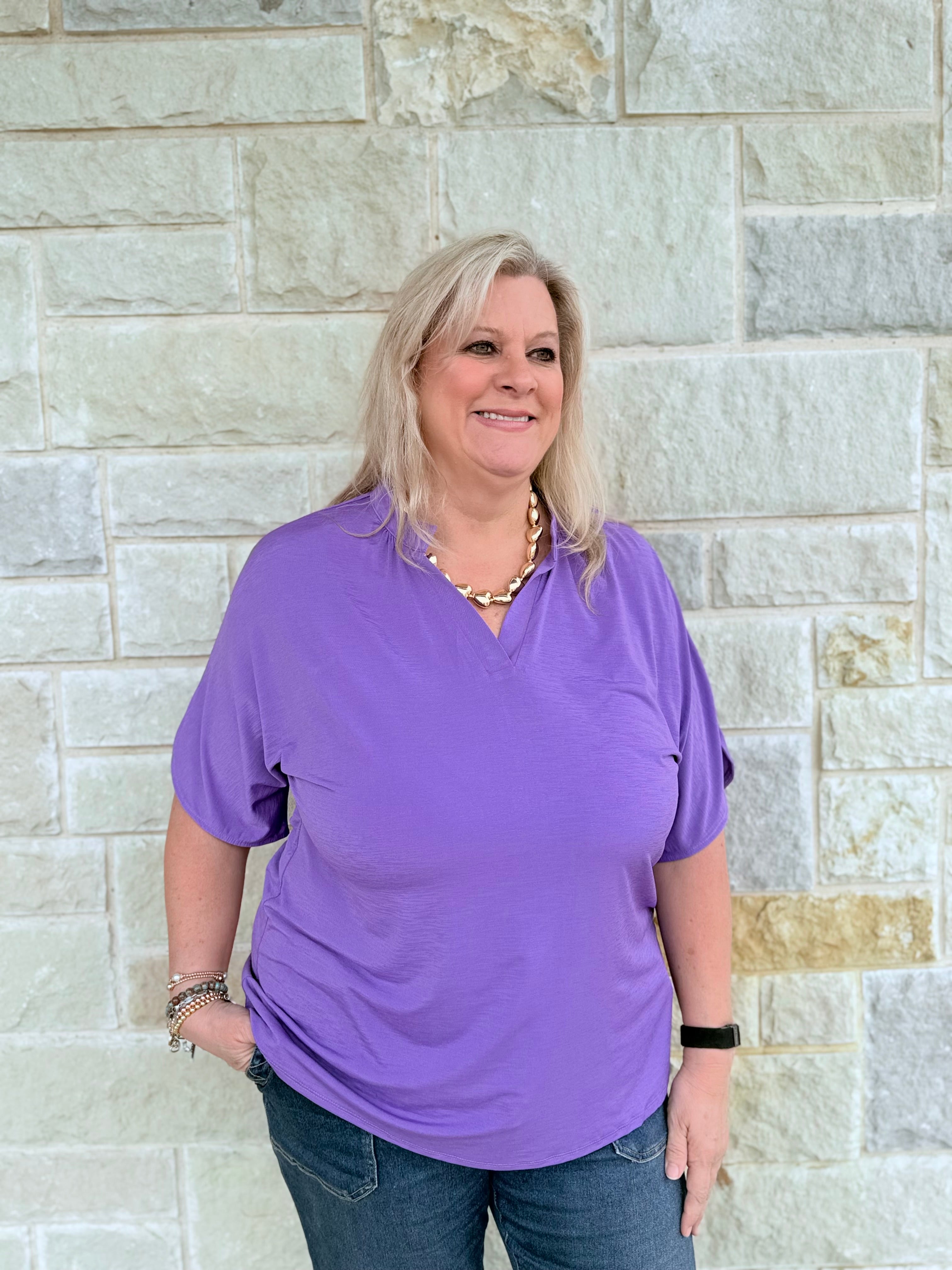 Introducing the Lizzy Breeze Blouse—a fresh update to your favorite Lizzy style. Made from our signature wrinkle-free fabric, this blouse keeps you looking effortlessly polished from morning to night. Designed with the classic mandarin collar and the easy, relaxed fit you will love, it now features subtly flared sleeves for a light, breezy touch of elegance. Perfect for casual days, busy schedules, and everything in between, the Lizzy Breeze Blouse delivers comfort, confidence, and timeless style with zero fuss.