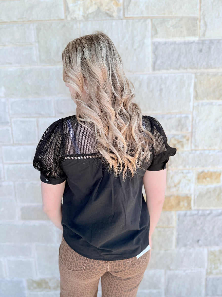 Jodifl Midnight Chic Mesh Sleeve Top - Classic Black