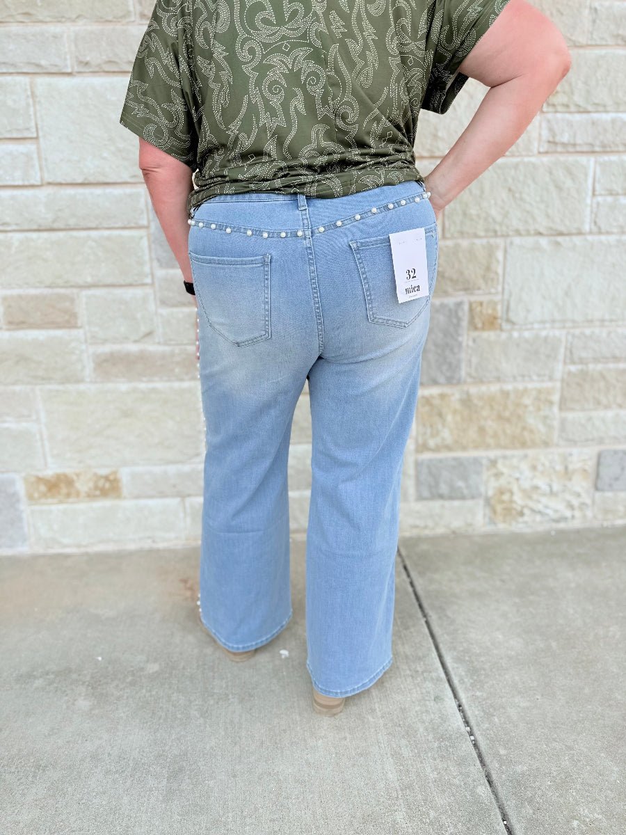 Mica Pearl Embellished High-Rise Wide-Leg Statement Jeans
