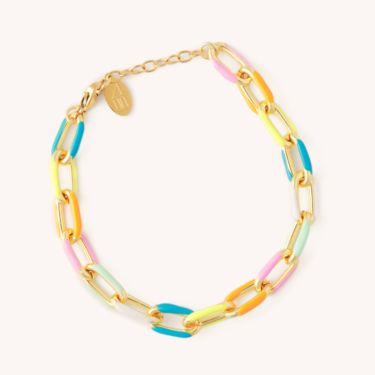This chain bracelet is such a popular item. You can't go wrong with this fun piece! 14K gold plated. 6 inches with 1.5-inch extender and logo charm