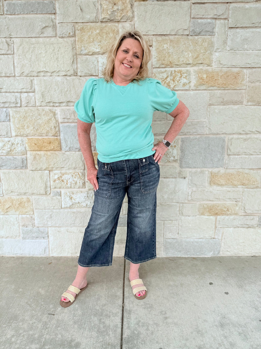 Sculptural Puff Sleeve French Terry Top - Vintage Stone Wash