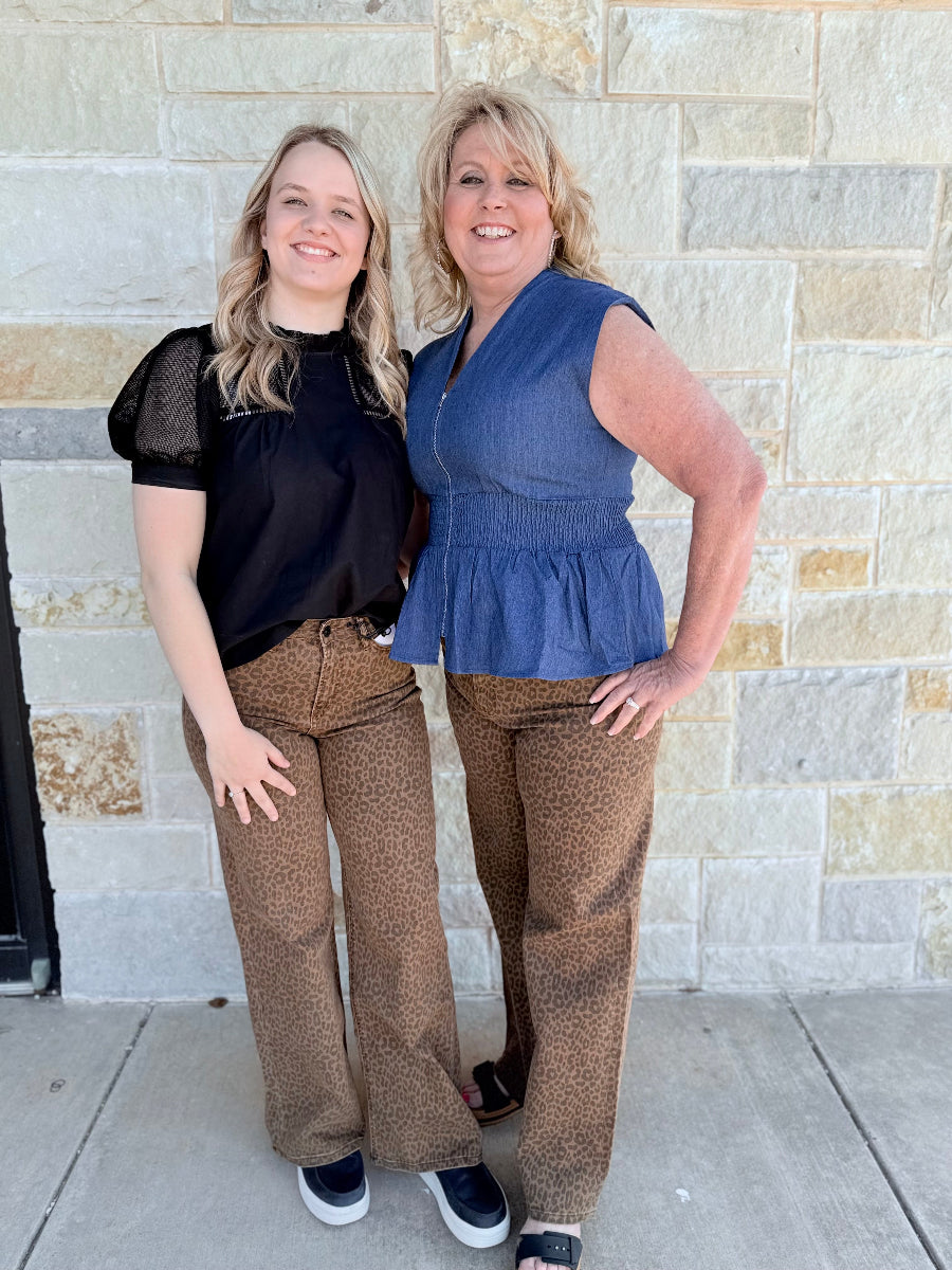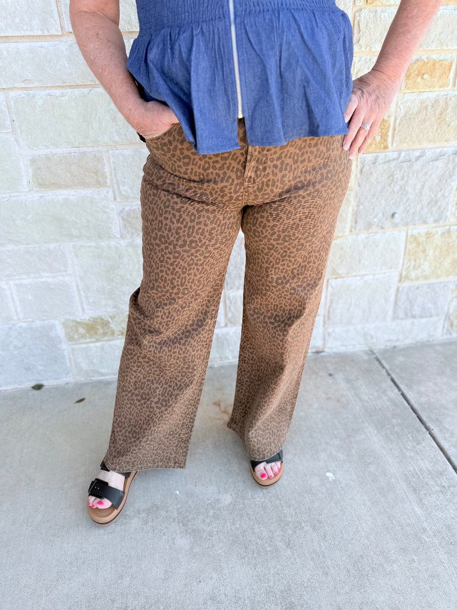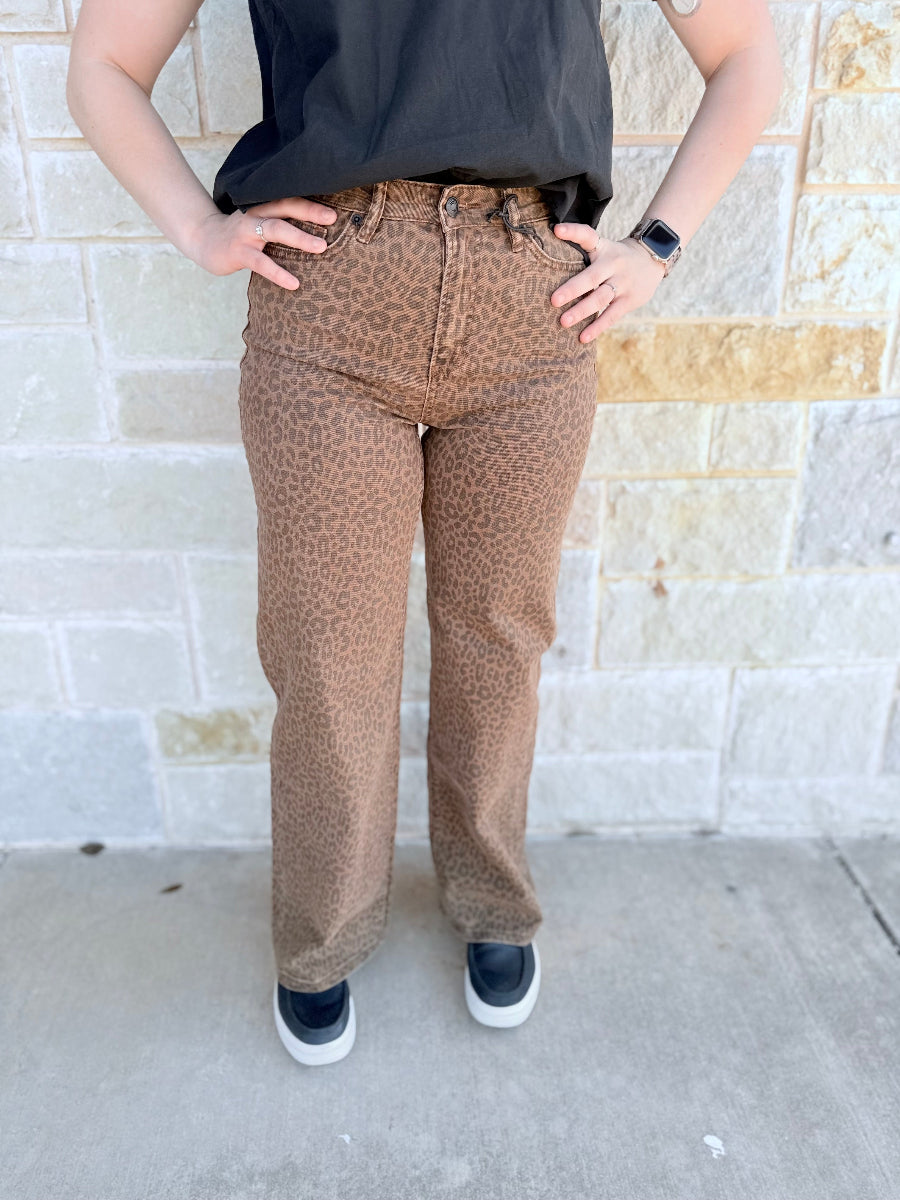 Wild Icon High-Waisted Leopard Wide Leg Jeans