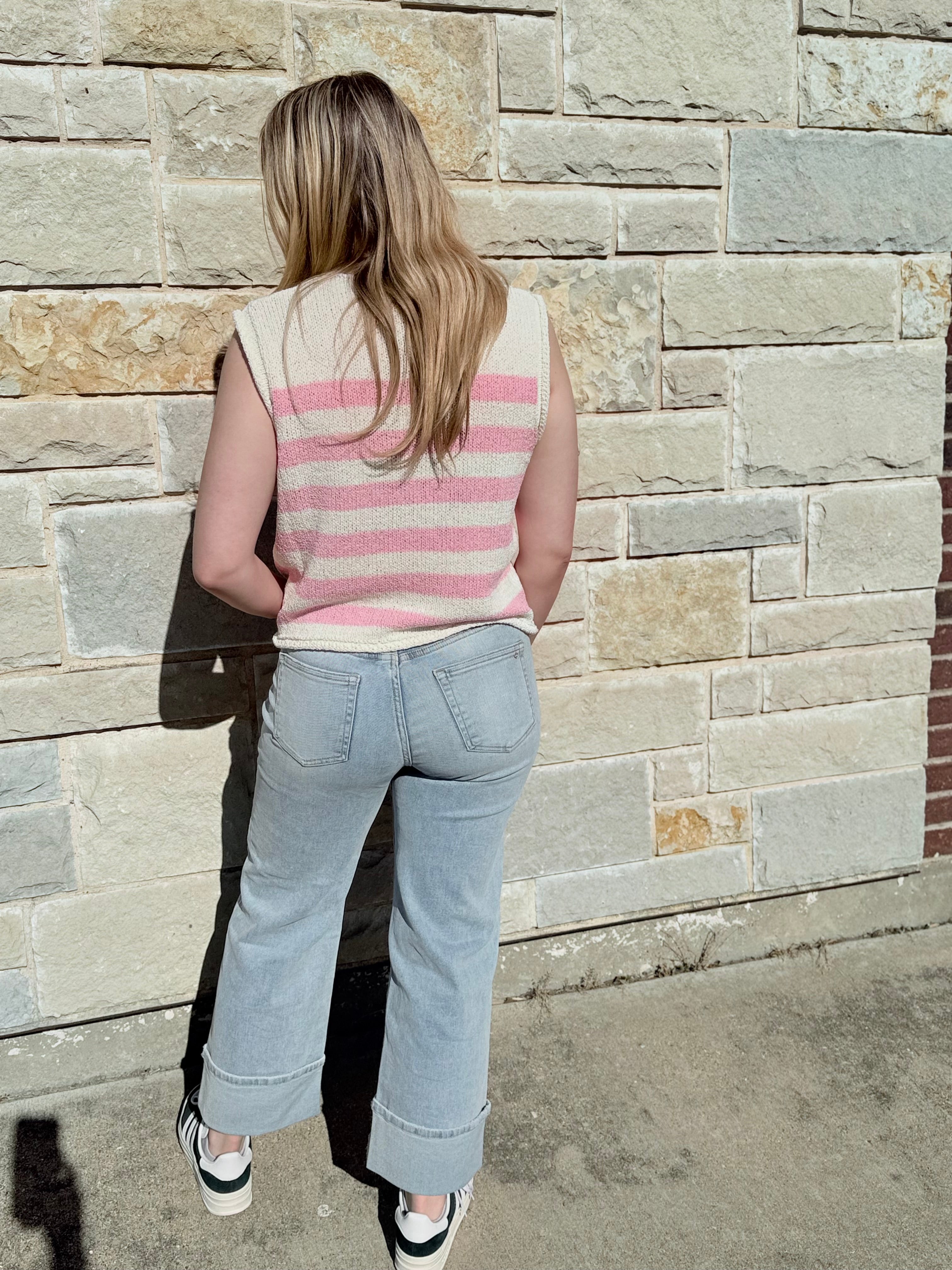 #sweaterveststyle #stripedknit #doublekboutique #capsulewardrobeessentials #coastalchic #modernminimalist #transitionalfashion #boutiquestyle #preppyaesthetic #knitwearseason