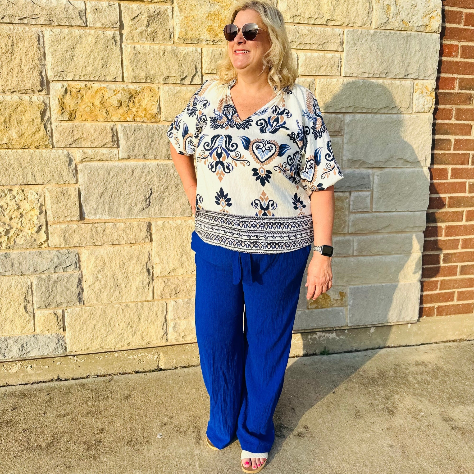This luxurious blouse boasts a unique two-tone border print and delicate bubble sleeves, creating a sophisticated and exclusive look. The v-slit neck and scalloped edges add to the overall elegance. The lined sleeves provide comfort without sacrificing style. A must-have for any fashion-forward wardrobe.