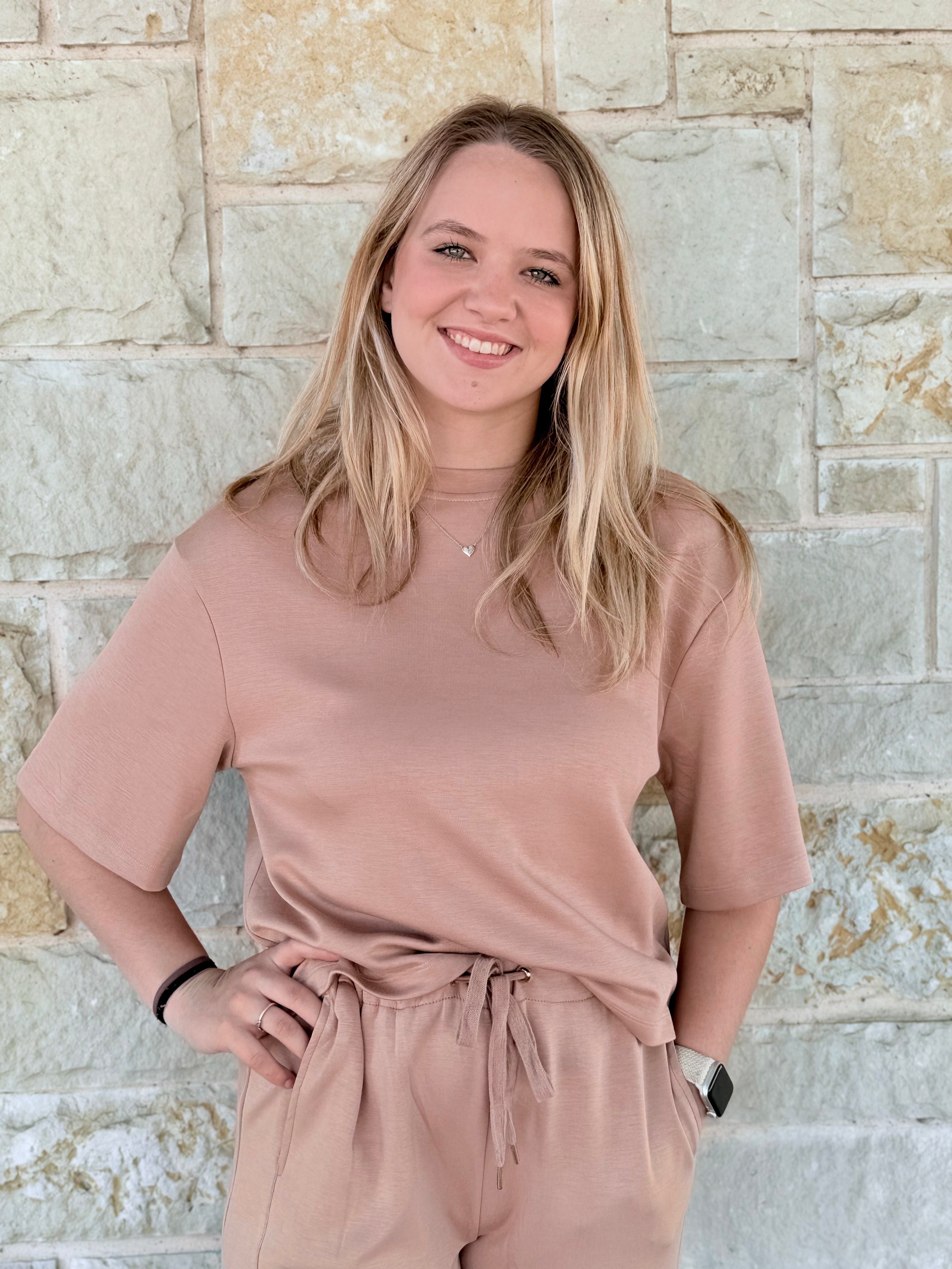 No Matter How You Style This Top, You'll Always Have A Rocking Outfit. This Lightweight Top Has A Crew Neckline That Leads To Drop Shoulders And Short Sleeves. The Relaxed Fit Is Best Paired With High Waisted Pants.