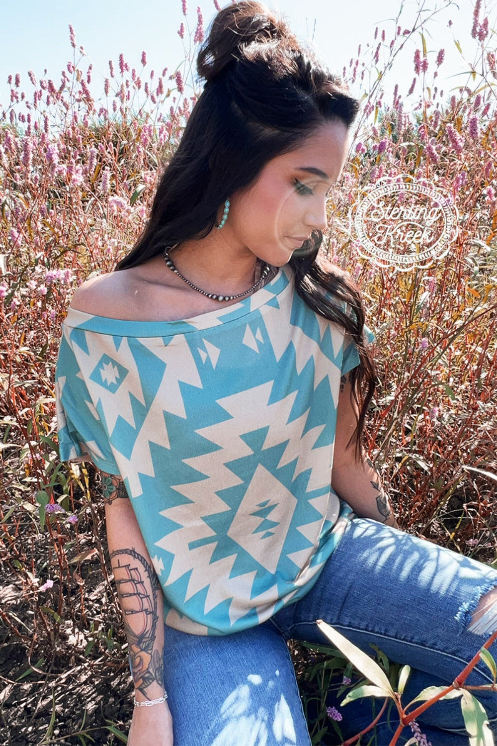 We don't like to have second thoughts when were getting dressed. We wanna feel good and look good too! This top is one of our favorites! The Turquoise and cream pair so nicely together! This top features an off the shoulder neckline with plenty of room in the sleeves! Perfect for work, or an afternoon lunch with the gals!