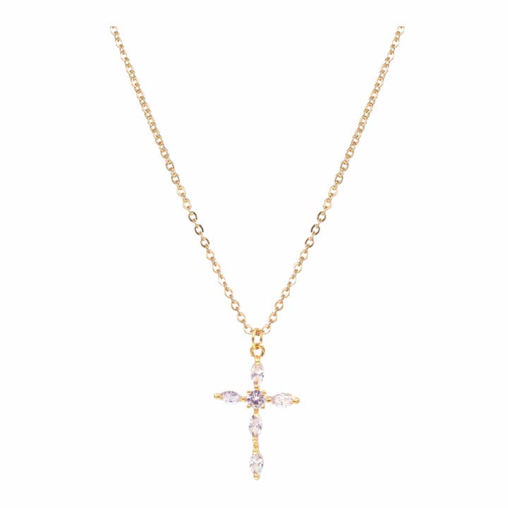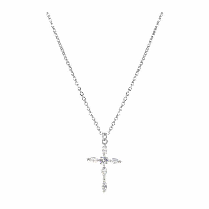 Elevate your everyday elegance with this striking cubic zirconia cross pendant necklace. Featuring a brilliant oval-cut stone set in a refined cross design, this piece captures light beautifully for a luminous sparkle. The adjustable 16" + 3" chain offers versatile styling options, allowing you to customize the length to suit your neckline. Perfect for layering or wearing solo, this sophisticated accessory transitions seamlessly from day to evening wear.